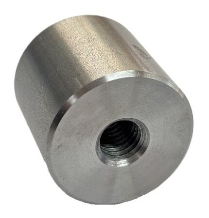 本製品はM10ネジ(貫通孔)のあるカラー(スペーサー)です。外周面は旋削加工を行わず、磨き材をそのまま使用しているため、コストを抑えて製作をしております。
